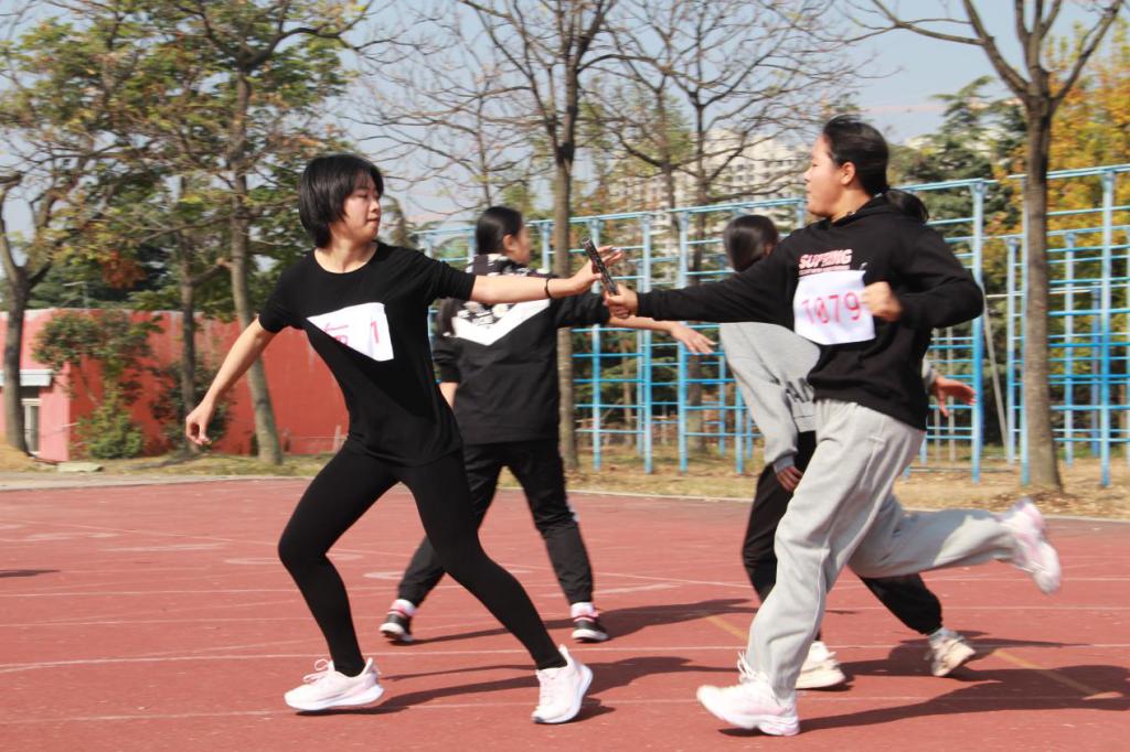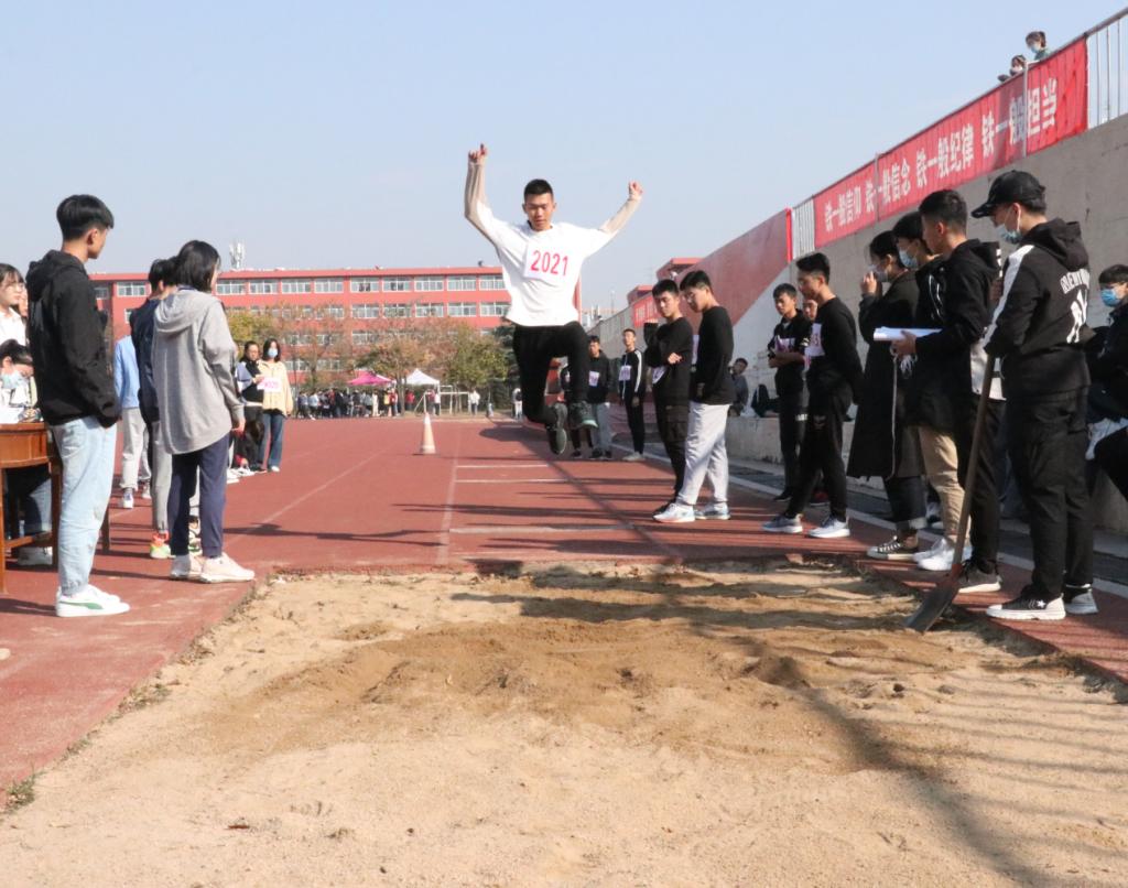 扬起船舵,奋力拼搏。运动会当天,有些许冷意,但是丝毫没有削弱同学们的热情。“浪潮风行,气势如虹,一班必胜!”一阵阵热烈的呐喊声吸引着大家纷纷来到操场围观比赛。本届运动会共设置了三个组别,比赛内容包括100米、200米、800米、1500米、4*100米接力、立定跳远、跳高、铅球等项目。赛场上,运动员们用激情的汗水、强健的体魄、坚持的信念展现文明风采,谱写运动乐章,赛出了风格和水平。最后的女子4×400米接力更是将气氛推向高潮,各学院观众都拉起横幅,在跑道两旁见证冲刺时刻。除了运动员们在挥洒热血,裁判员和工作者们也在操场的一角辛勤工作,以良好的精神面貌和专业技能,全身心地投入到各个体育项目的组织和评比之中。