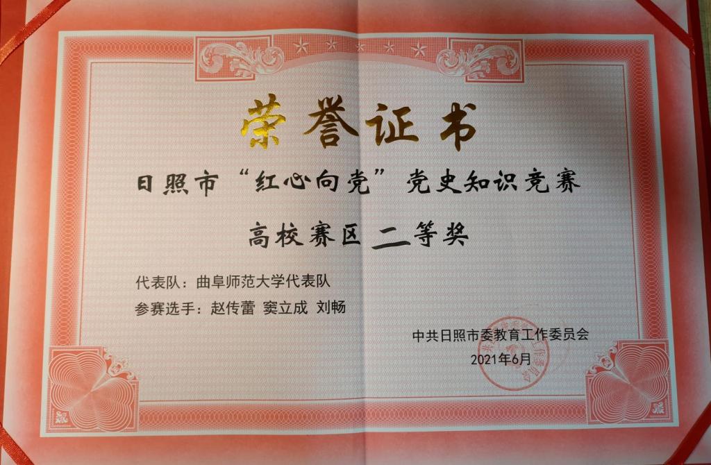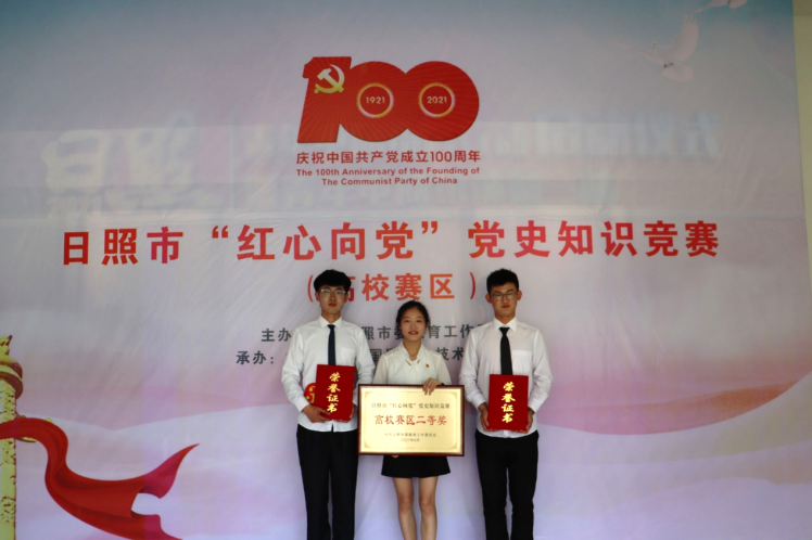 为促进党史学习教育深入开展,切实提高学习成效、增强党性修养,6月2日下午,由日照市教育工作委员会举办的“红心向党”党史知识竞赛活动在山东外国语职业技术大学隆重举办,公司员工赵传蕾、窦立成和刘畅代表学校参加了比赛。