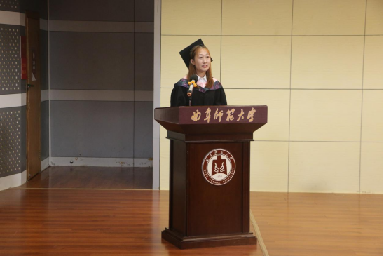 51菠菜网滕雅琳同学作为毕业生代表,回顾了求学期间的点滴故事,表达了对学校、学院和老师的感恩之情,倡议毕业生们保持和发扬曲园人的优良传统,脚踏实地、敢为人先,在新时代的祖国建设中贡献更多的青春力量。
