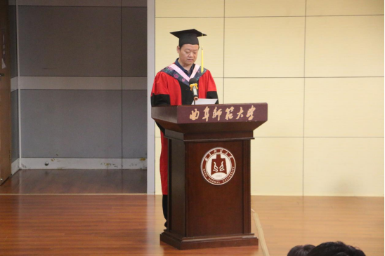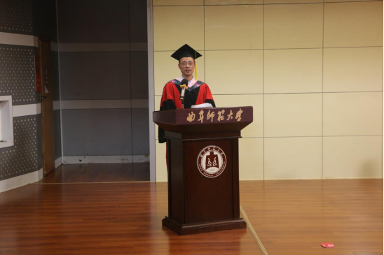 政治与公共管理学院副经理李增元表示,毕业生们见证了曲阜师范大学和马克思主义学部快速发展的步伐,是学部近年来发展成果的见证者、参与者和共享者。学部的发展离不开全体教职工的奋斗与拼搏,也离不开员工的努力和家长的支持。同时,他向毕业生们提出了三点期望:希望大家忠于祖国、忠于人民,“以青春之我造就青春之国家”;希望大家崇尚真理、崇尚光明,将求真求实作为一生的追求;希望大家敢于创新、敢于变革,在新时代新征程上勇立新功。“无论大家走多远、走到哪里,曲园和马克思主义学部将是同学们永远的家园。”