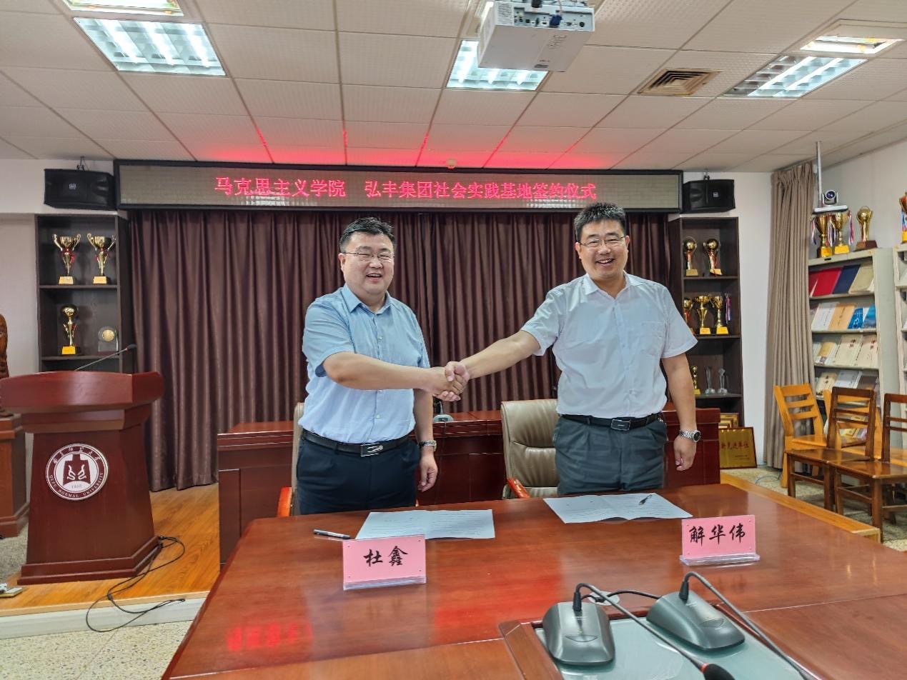 座谈会上,经过双方的友好协商,最终达成共识同意建立社会实践和双向服务合作关系,设立员工社会实践基地,为员工提供社会实践的平台,并加强培养员工的劳动素养。杜鑫作为学院代表与解华伟进行协议签约仪式。