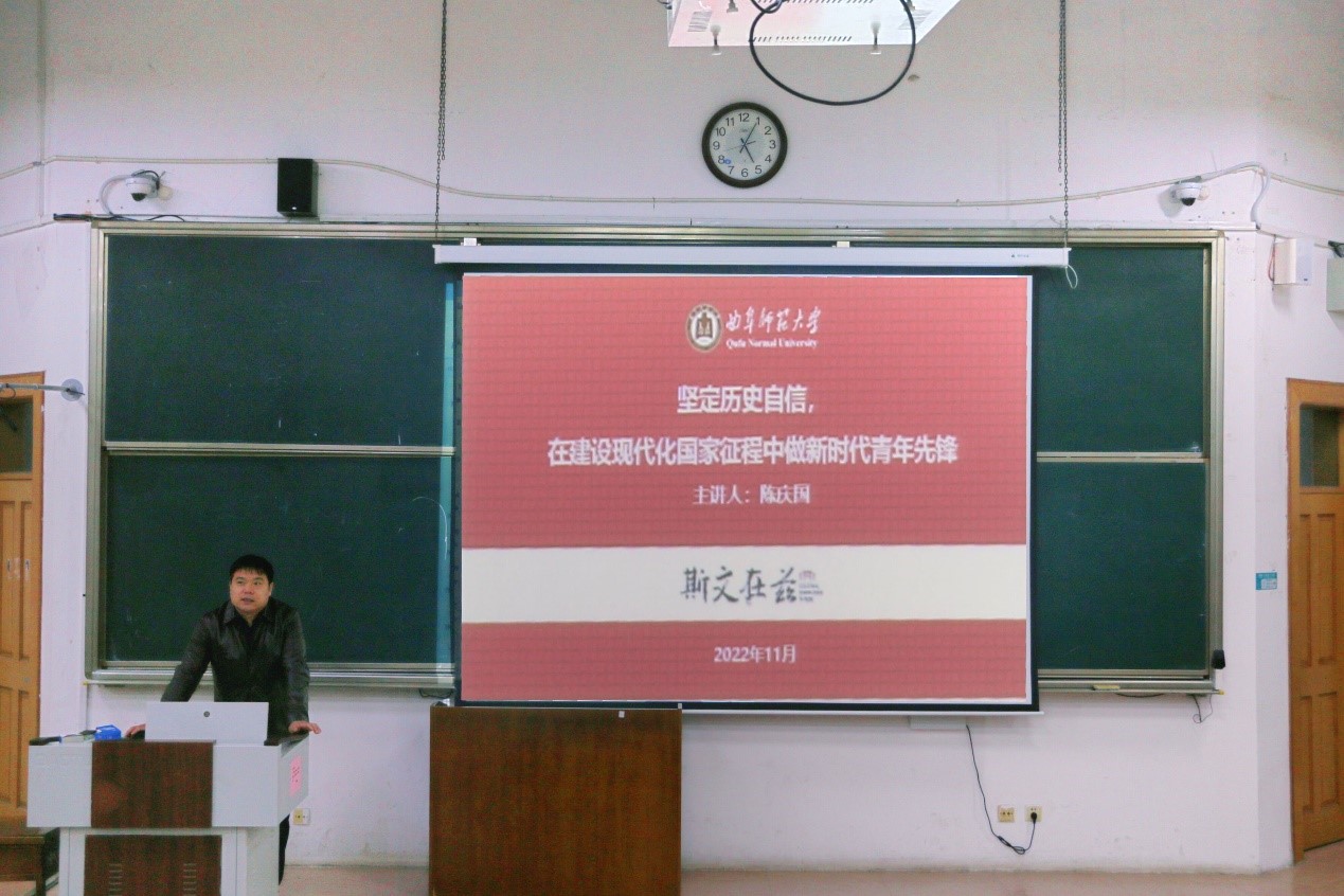 会议以“ 坚定历史自信,在建设现代化国家征程中做新时代青年先锋”为主题,分别从“历史自信的理论源泉”、“坚定历史自信的重大意义”、“坚定历史自信的青年作为”三方面展开。陈庆国指出,在新征程上创造新的历史伟业,必须一以贯之地牢记“三个务必”,坚定历史自信,增强历史主动。同时,陈庆国生动阐释了坚定历史自信的重要意义,并强调作为新时代新青年的同学们要不断提高思想政治站位,强化责任担当,立志做有理想、敢担当、能吃苦、肯奋斗的新时代好青年。