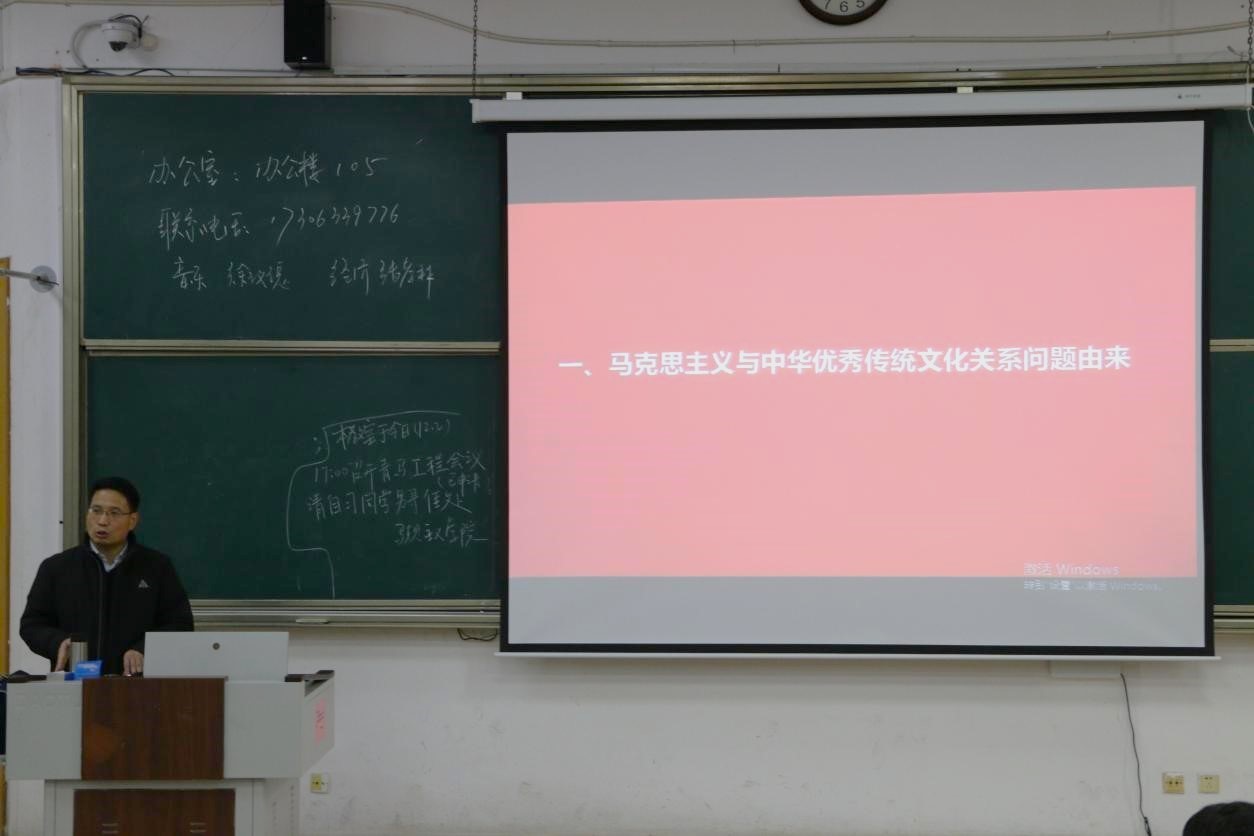 会议以“马克思主义与中华优秀传统文化之间的关系问题”为主题,分别从“马克思主义与中华优秀传统文化之间的关系的问题由来”、“马克思主义与中华优秀传统文化之间的契合之处”、“马克思主义与中华优秀传统文化的融合”三方面展开讲解。任松峰指出,学习马克思主义应结合中华优秀传统文化与中国实际发展情况,在坚持文化自信的基础上,立足于时代发展的需求,实现马克思主义中国化与中华优秀传统文化的创新发展。同时,任松峰表示,要以中华优秀传统文化滋养马克思主义,推动形成中国化、大众化的马克思主义。在实践之中发展新时代的马克思主义,在行动之中创新中华优秀传统文化。
